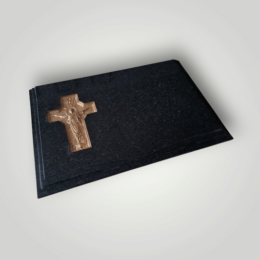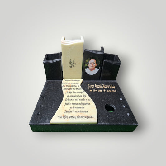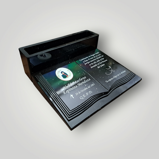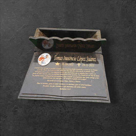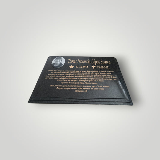 Lapida de granito negro con foto formato libro