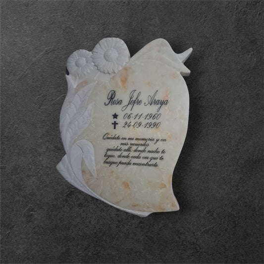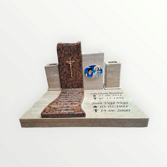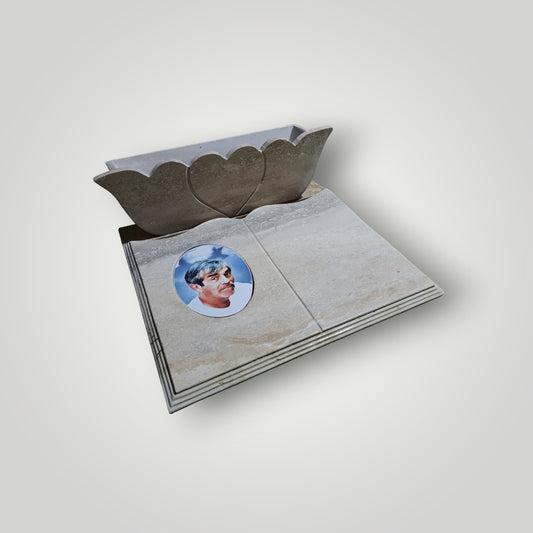 Lapida de travertino con foto más florero tipo corazón